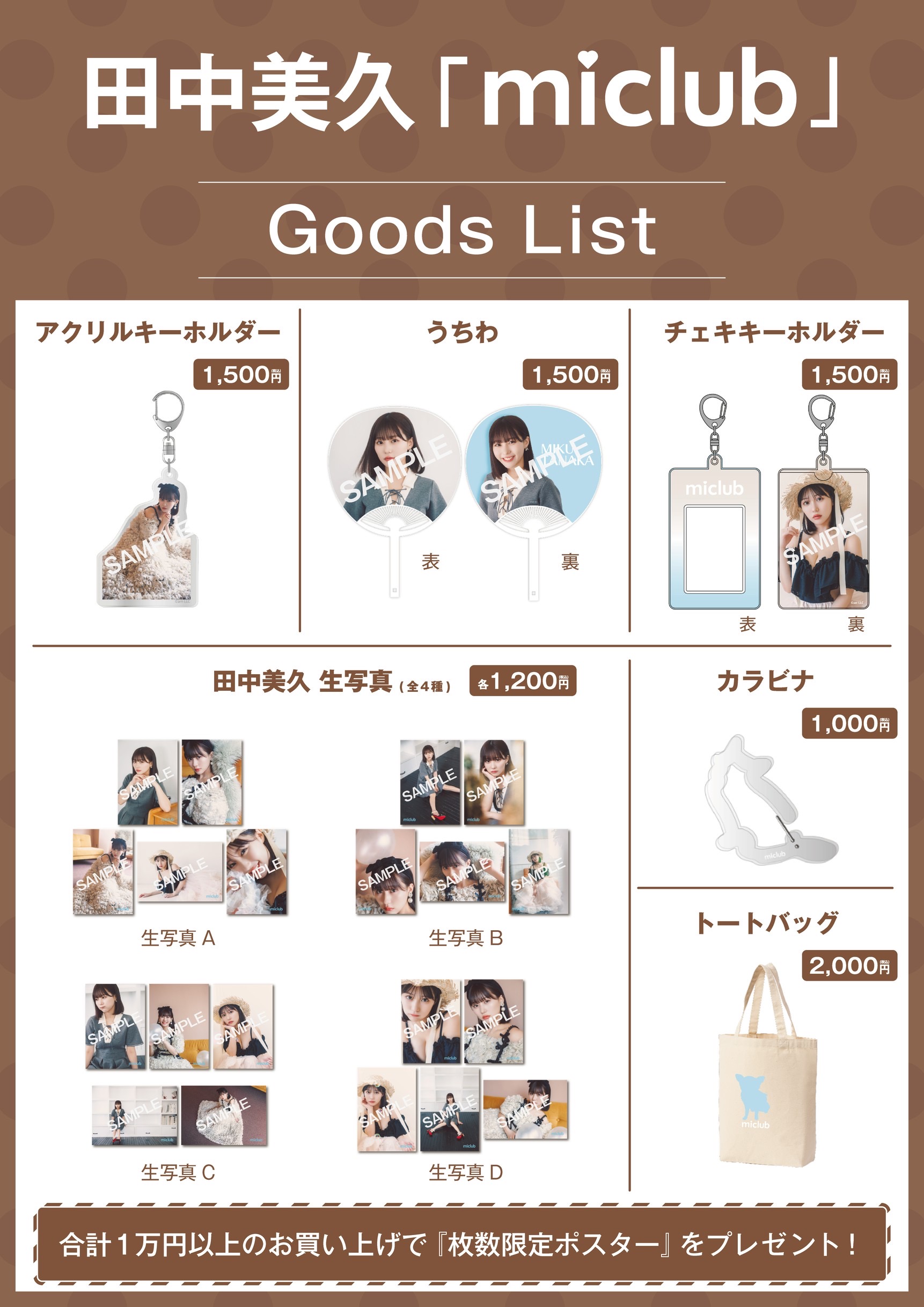 田中美久 ファンクラブイベントのグッズ一覧です。